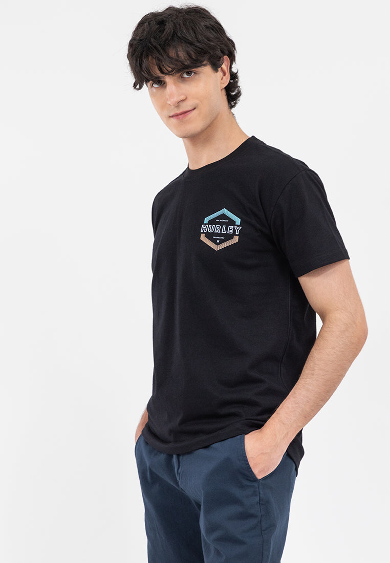 Expand your wardrobe rotation with Hurley's Men's Logo Tee, cut from a classic colorway and finished with a chest and back branding graphic for added statement.