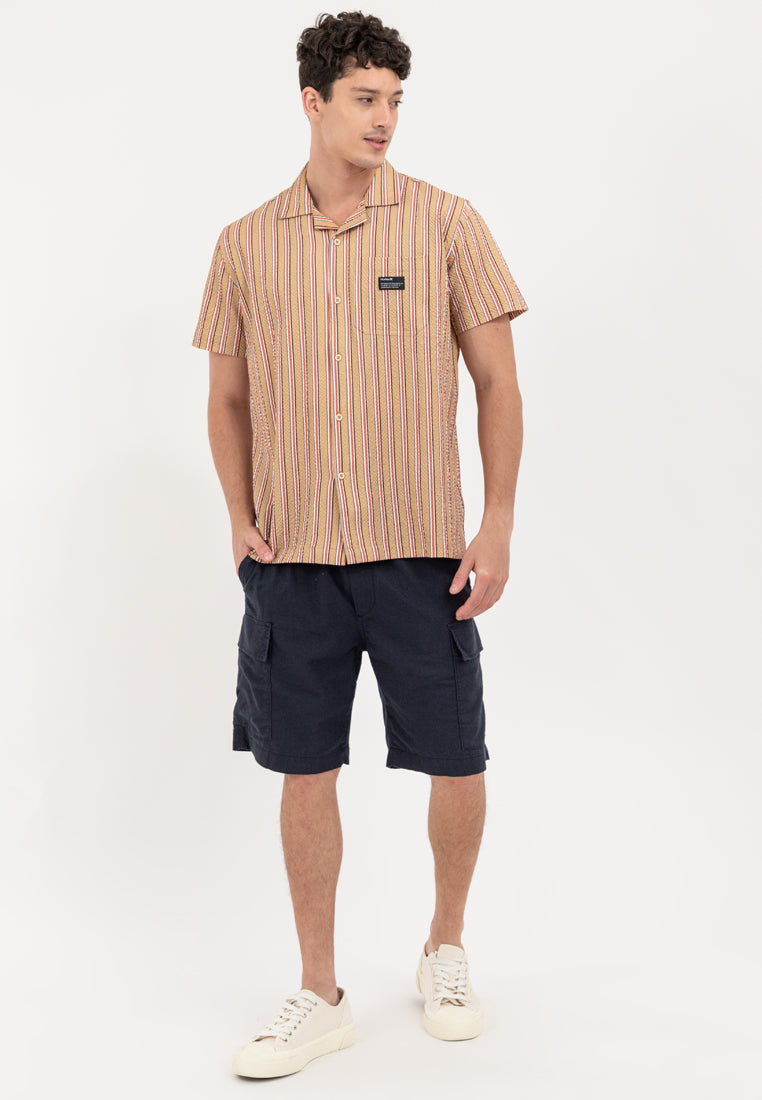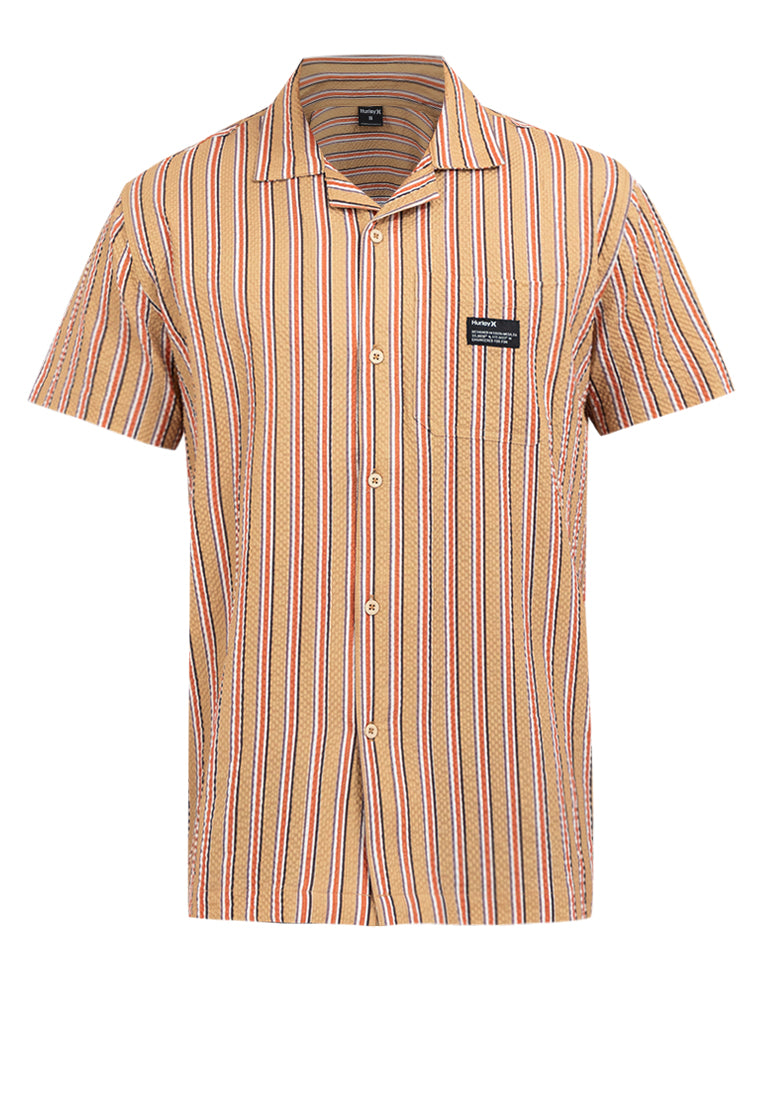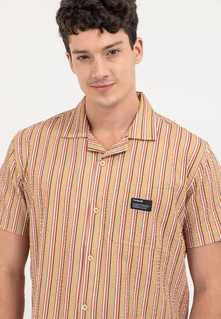 Expand your wardrobe collection with Hurley's Men's Logo Patch Button Down Shirt, featuring a classic button-up silhouette and striped motif for a timeless appeal.