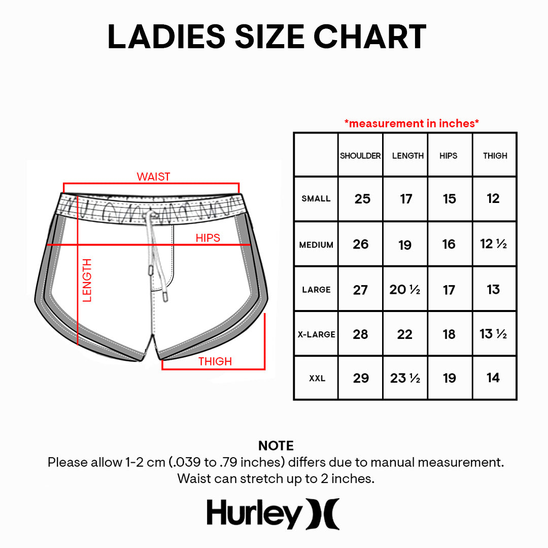 Ladies Brand Logo Shorts from Hurley offer a sporty and regular fit, featuring a soft fabric and the brand's signature logo for a laid-back style.