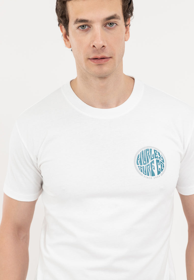 Expand your wardrobe collection with Hurley's Men's Graphic Tee, cut from a classic colorway and finished with a striking chest and back graphic for a statement.