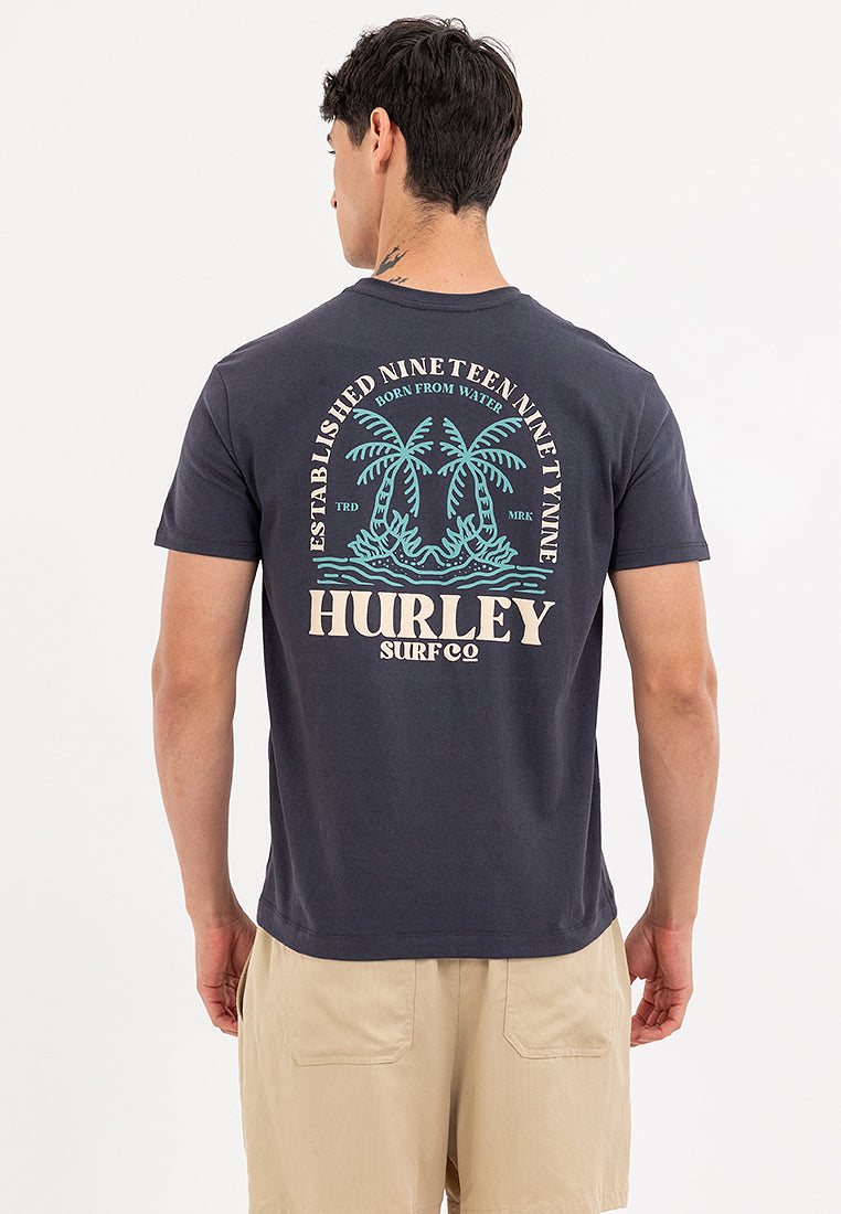 The Hurley Men's Graphic Tee features a ribbed crewneck, graphic design, and short sleeves with a classic fit for stylish casual look.